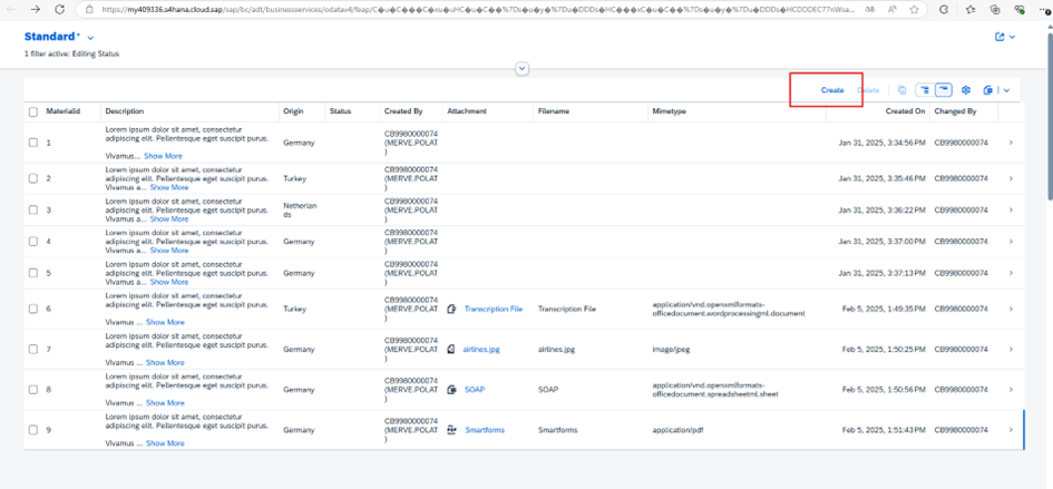 Create butonuna tıklanıp bir kayıt oluştrulur.