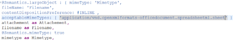 @Semantics.largeObject : {mimeType: 'Mimetype', fileName: 'Filename', contentDispositionPreference: #INLINE }