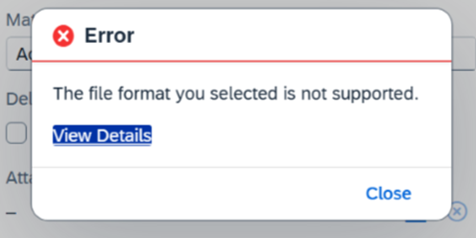 İstenilen tipte bir dosya girmezsek aşağıdaki gibi bir hata mesajı alırız.