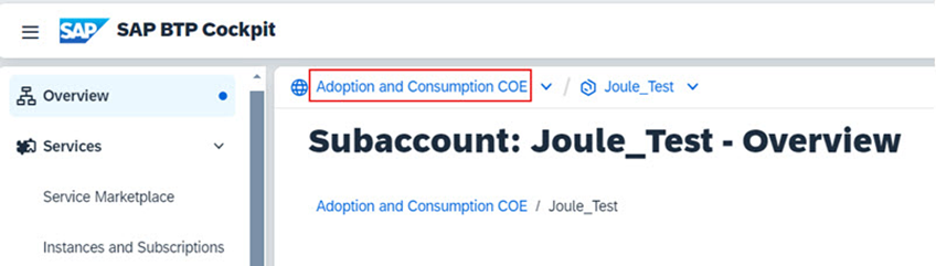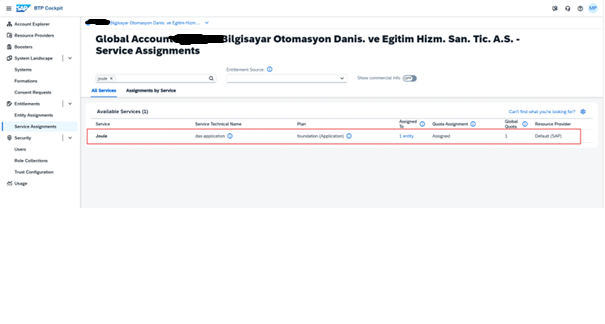 • Joule entitlements farklı bir BTP Global hesaba eklenmiştir ve sizin Global Account Admin erişiminiz yoktur.