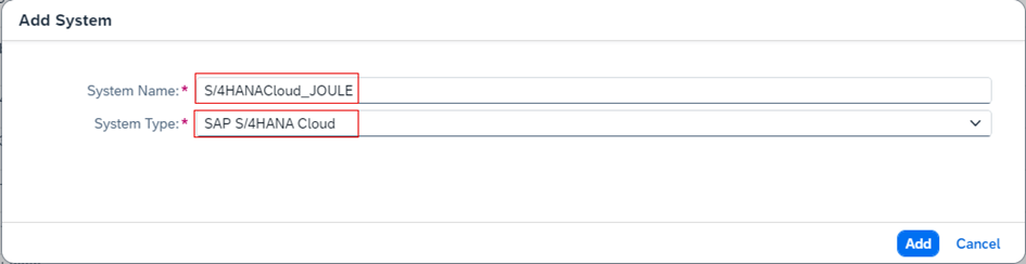 a.3.5. System Name olarak istediğiniz bir isim veriniz ardından System Type : SAP S/4HANA Cloud olarak veriniz. Sonrasında Add deyiniz.