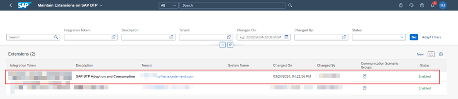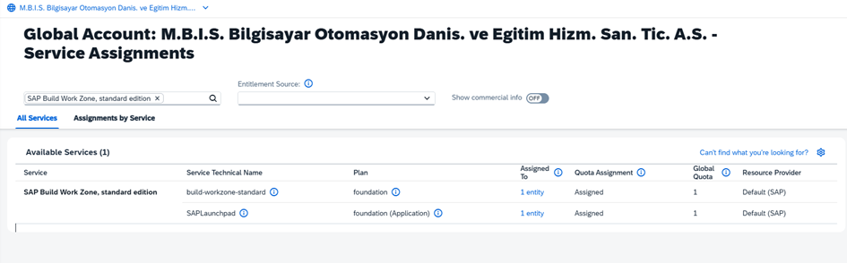 NOT: BTP Cockpit’te güncellemelerin gelmesi için BTP Cockpit’i yenilemeniz (refresh) gerekebilir.