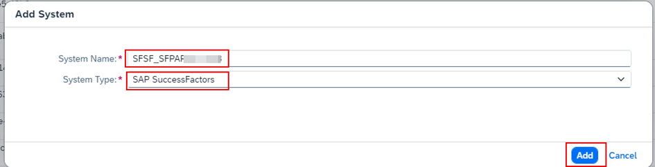 a.4.5. System Name kısmına dilediğiniz bir adlandırma yapabilirsiniz. System Type’ı SAP SuccessFactors olarak seçiniz. Ardından Add butonuna tıklayınız.