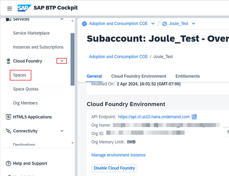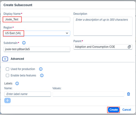 Not: Region, Joule için desteklenen bir data center’dan olmalı. Daha detaylı bilgi için: https://help.sap.com/docs/JOULE/3fdd7b321eb24d1b9d40605dce822e84/8b4d8708f6d646a995fdc50f8c508f1f.html?version=CLOUD