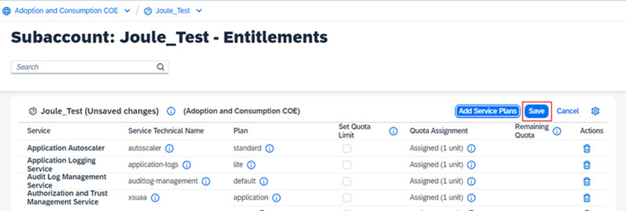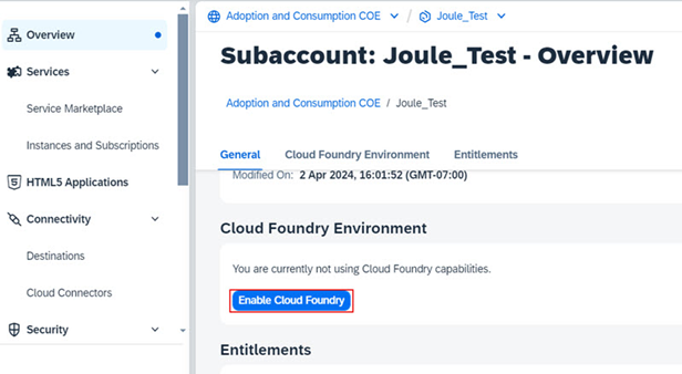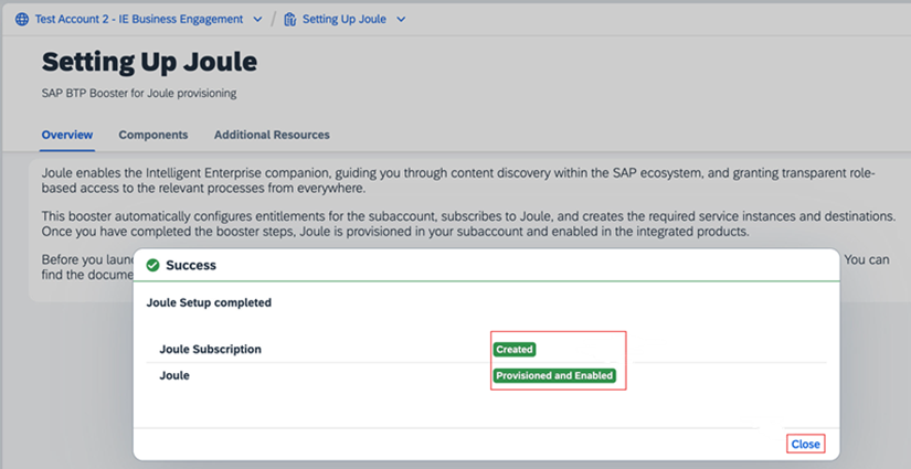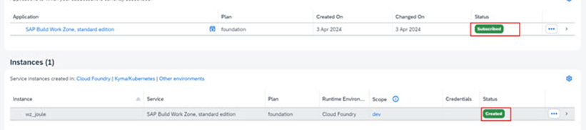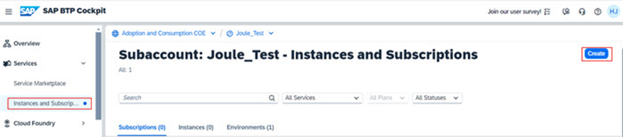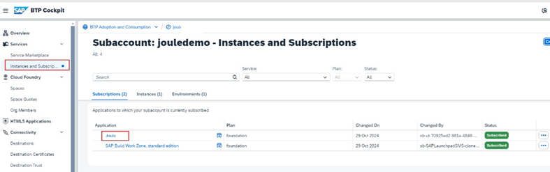 2. Services -> Instances and Subscriptions ‘i seçiniz ve Joule’ün başarıyla takip edildiğini onaylayınız (subscription).