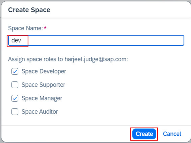 b.1.8. Create Space tuşuna basınız.