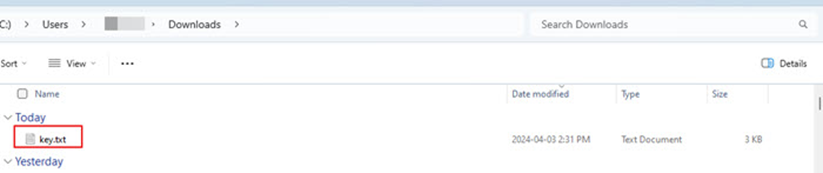 b.5.11. “key.txt” dosyasının başarıyla indiğini onaylayınız.