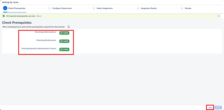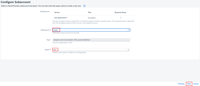 b.6.4. Subaccount dropdown menüden daha önceden yaratılan Joule subaccount’unu seçiniz. Next deyiniz.