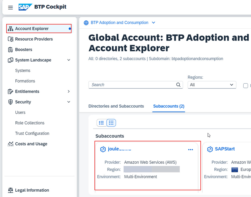 1. Account Explorer’a tıklayın ve Joule için kullanılan Subaccount’ ı seçin.