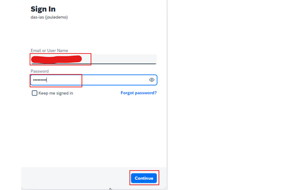 3. Joule uygulamasına tıklayın. SAP Cloud Identity Services ‘te tanımlı kullanıcı ismi ve şifrenizi giriniz. Ardından Continue’a basınız.