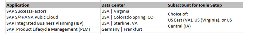 • Joule hangi SAP çözümleri için kurulacak ve bu çözümlerin veri merkezleri nelerdir?