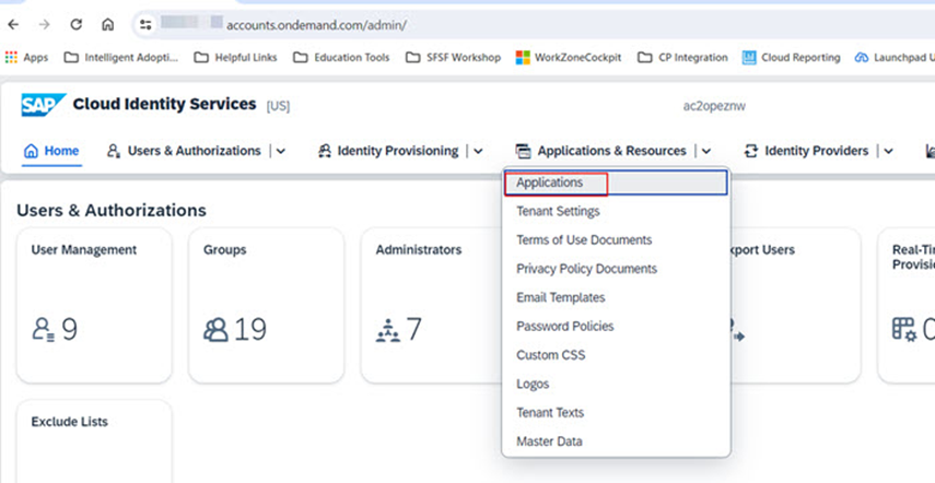 • SAP Cloud Identity Services Admin