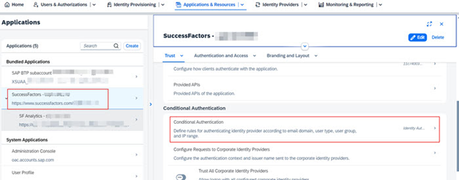 NOT: Hazırlık adımlarında (preparation) belirtildiği gibi, aynı Joule örneği (Joule instance) birden fazla uygulama (örneğin SuccessFactors ve S/4) arasında paylaşılacaksa, bu uygulamaların aynı Conditional Authentication ayarlarına sahip olması gerekir.