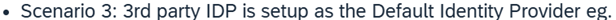 • Senaryo 3: Üçüncü taraf Kimlik Sağlayıcı, Varsayılan Kimlik Sağlayıcı olarak ayarlanmıştır (örneğin, aşağıdaki ekran görüntüsünde OKTA).