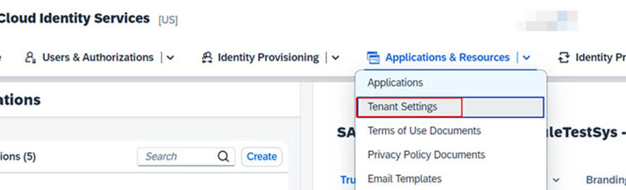Menüden Applications & Resource >> Tenant Settings gidiniz.