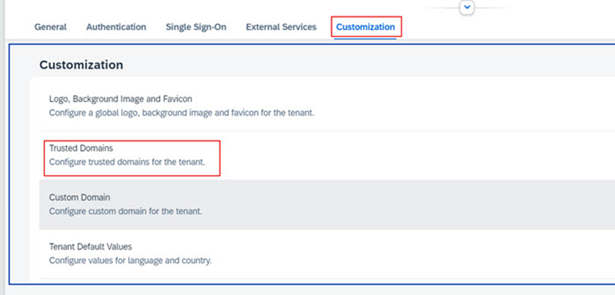 Customization >> Trusted Domains ‘e tıklayınız.